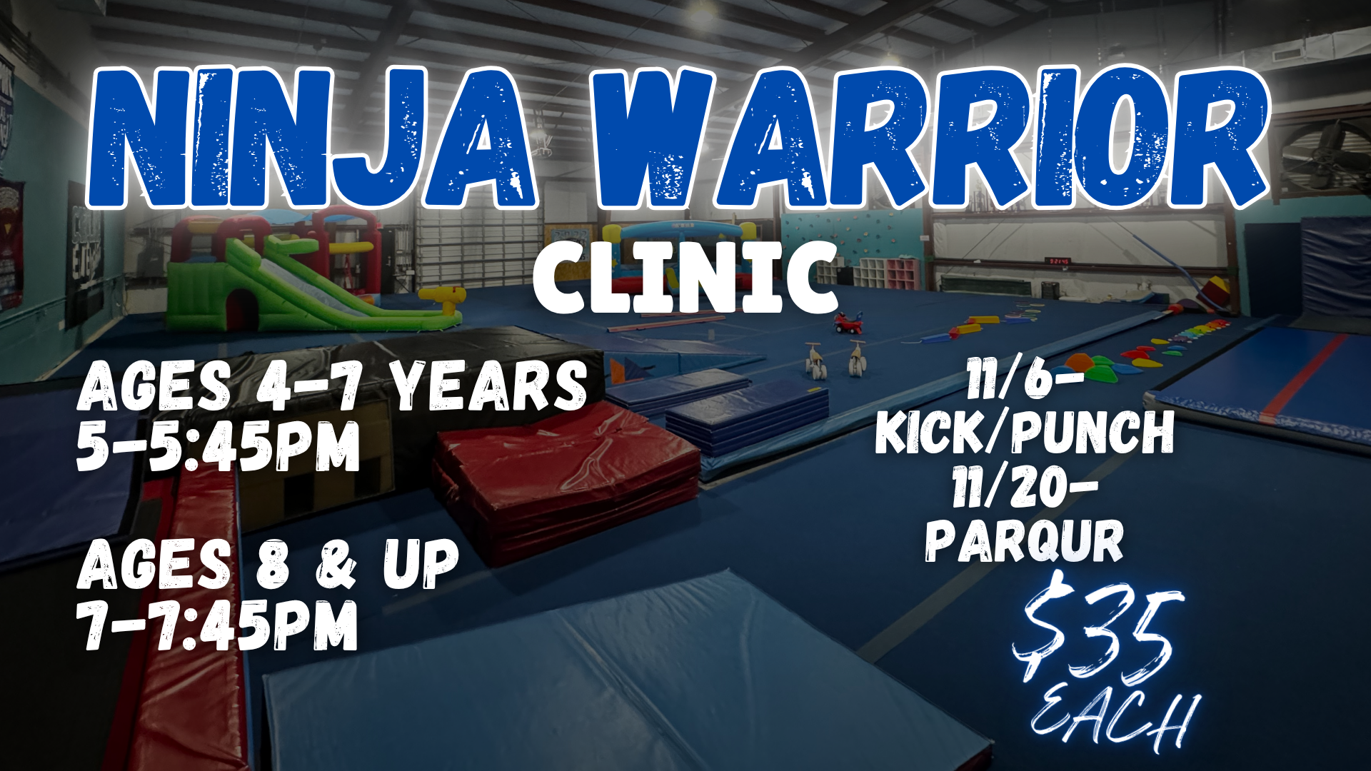 Ninja Warrior Clinics ages 8 and up!