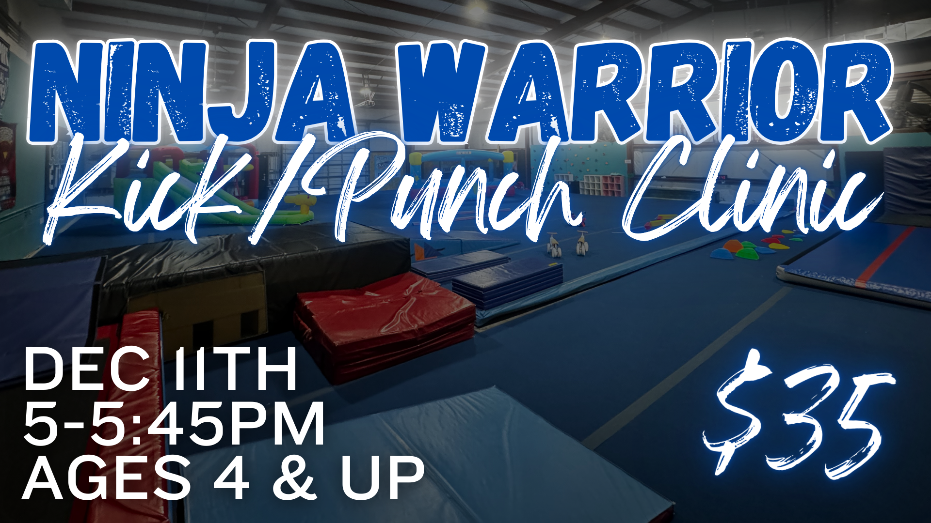 Ninja Warrior Clinic- come join us for another session of kicking and punching! 12/11 5-5:45pm ages 4 and up! Register HERE