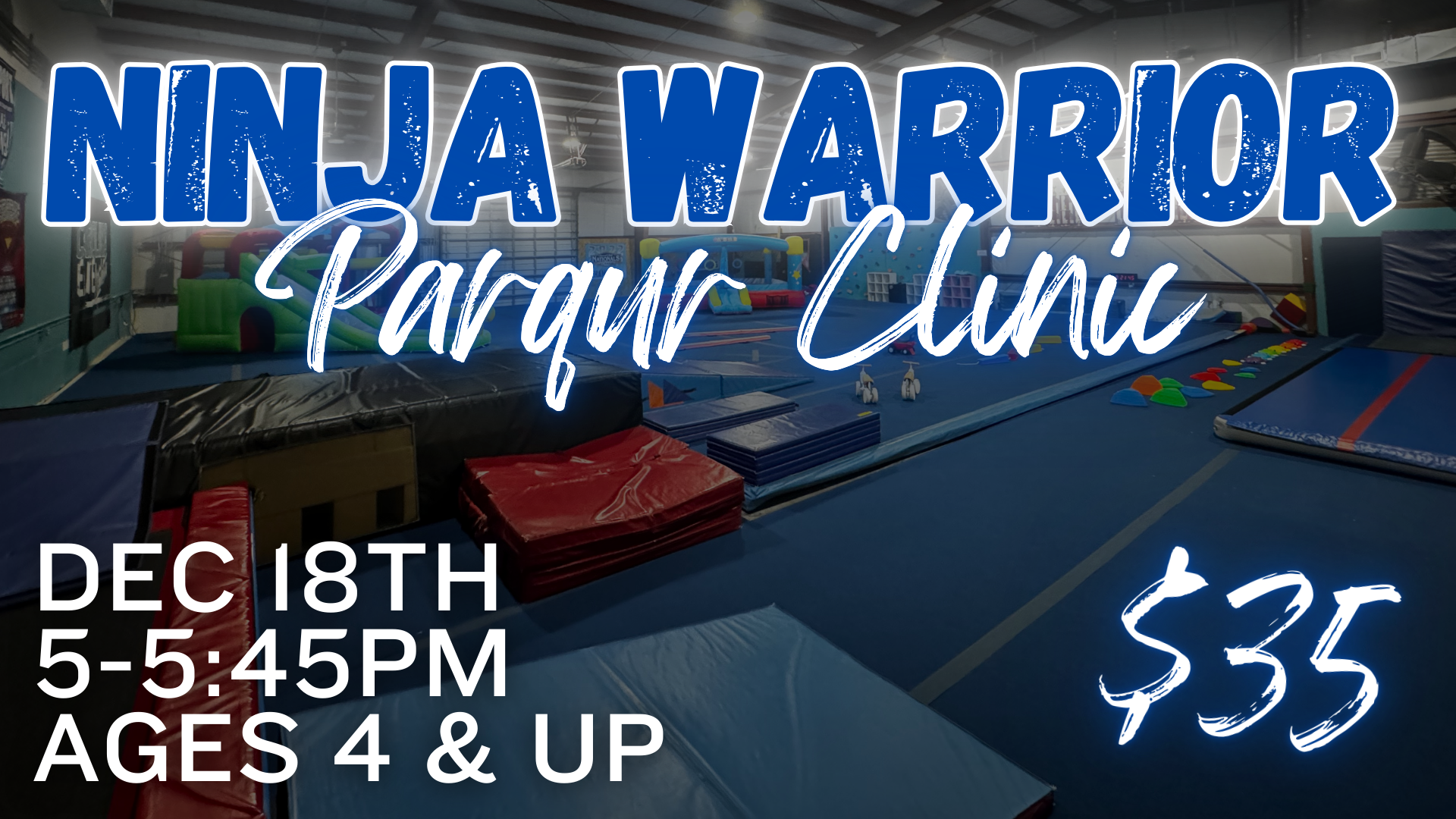 Ninja Warrior clinic ages 4 and up $35 per athlete 12/18 5-5:45pm Register HERE